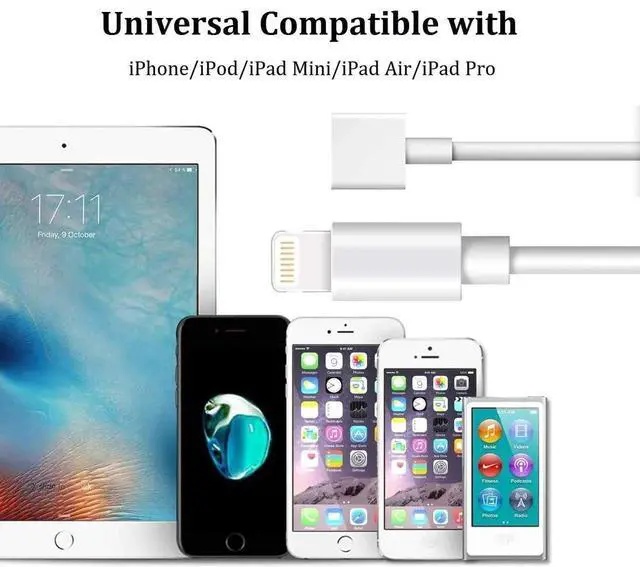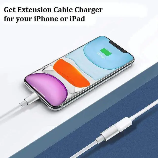 Multifunctional iPhone Extension Cable Used this iPhone extension cable connector cord male to a female cord to transfer both audio video podcasts music picture data and charging for your devices. Universal Compatibility The lightning extension cable is perfectly compatible with iPhone 14/14 Plus/14 Pro/14 Pro Max/13/13 Mini/13 Pro/13 Pro Max/12/12 Mini/12 Pro/12 Pro Max/SE 2020/11/11 Pro/11 Pro Max/XS/XS Max/XR/X/8/7/7 Plus/6/6 s/Plus iPhone 5 5e 5s iPod touch iPad Mini/Air/Pro. Support iOS 17 system No Error Message Pop-up. 6FT iPhone Charger Extension The unique design of lightning extension cable 6ft male to female can meet your daily needs.