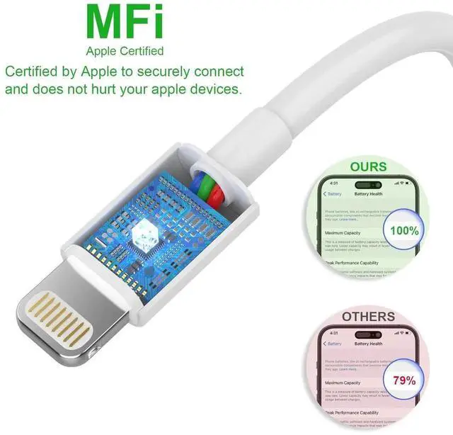 Sync: The fast charger iphone cord adopts the latest MFI C94 lightning end which is specially designed for fast power supply which can charge your phone fast. Its charging speed is faster than ordinary lightning cables. It also supports data transfer speeds of up to 480Mbps to easily transfer music photos and files between iPhone and Macbook in seconds.?
