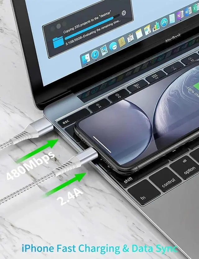 iPhone Fast Charging & Data SyncThe iphone charger cord complies with all standards transfer speed up to 2.4A fast charging and 480Mbps support CarPlay to establish a secure and stable connection with in-car entertainment system using this connectivity lightning cable you can easily get directions answer phone calls respond to messages and more. 2FT-Perfect Length2FT iPhone cable will not tangle or kink easy to carry and store. This cable is perfect for use inside your car eliminating the mess of extra wires and keeping your car's interior neat and organized. For use in the office or work area this medium length cable will provide a stable charging connection for your devices without taking up too much space.