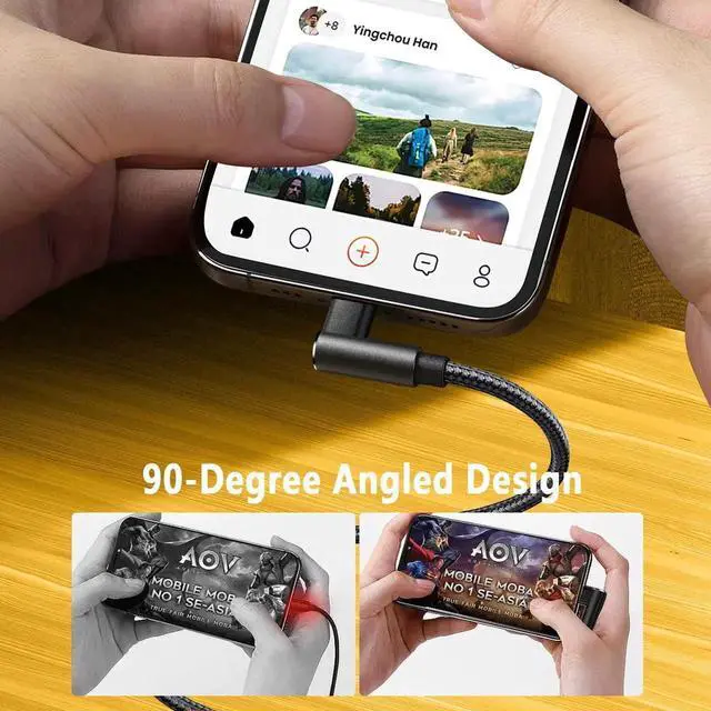Lightning Cable: With a 90-degree angled connector and a 1.8 -meter length this iPhone long charger cable is great for gamers. It allows free movement during gaming on your iPhone or watching videos in bed. The included cable tie ensures the cable doesn't tangle making it easy to organize. On the go the long length enables charging and using your device simultaneously in various scenariosSwift Data Transfer & CarPlay iPhone charger: This isn't an ordinary iPhone Lightning cable. It enables rapid and reliable data transfer (max 480 Mbps) easily backing up precious photos videos or transferring important work files. Moreover it's fully compatible with CarPlay. Connect your iPhone to your car's system for a hands-free driving experience including calls navigation and music streaming with a stable connectionEco-Conscious