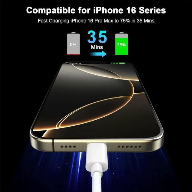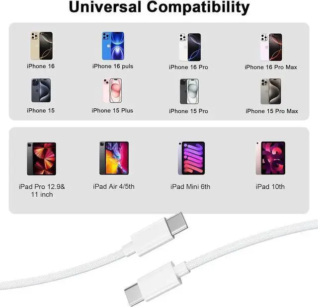 Thanks to exceptional flexibility remains tangle-free even when stuffed into a bag or pocket. What You Get Includes 2 Pack 60W 10ft long Woven USB C to C Charging Cable a 36-month worry-free warranty and 24/7 friendly customer service. Any questions about the iPhone 16 charger fast charging cable cord 10 ft long please feel free to contact us and we will reply within 12 hours.