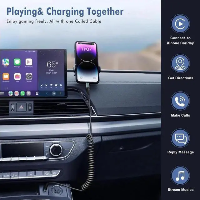 CarPlay Support: Simply plug in your Lightning cable to enjoy lag-free connectivity that instantly syncs your iPhone with your vehicle's infotainment system seamlessly syncing music maps and calls while charging. It delivers a smarter smoother experience that transforms every drive into an enjoyable journey. 2.4A