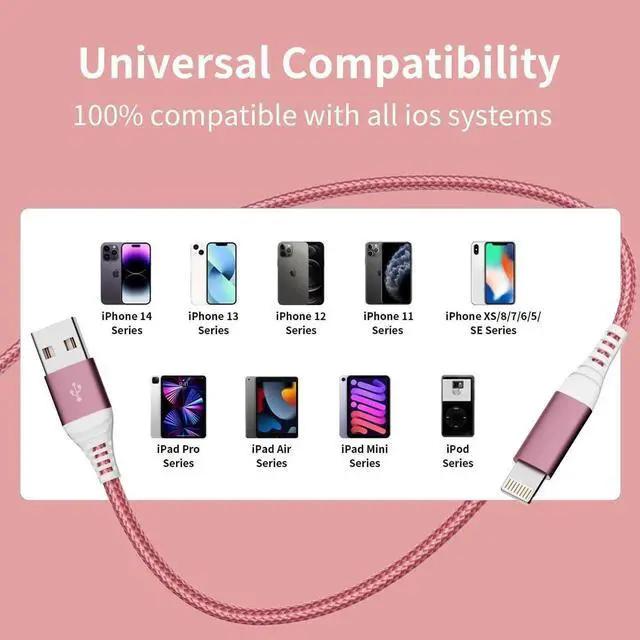 ![Main image of [MFi Certified] iPhone Charger 6FT 3PACK USB A to Light-ning Cable Nylon USB iPhone Fast Charging Cable Cord with Tinned Copper Compatible iPhone 14/13/12/11 Pro/MAX/XR/XS/8/7/6 Plus S SE/iPad iPod](https://c1.neweggimages.com/productimage/nb640/C280S2509220HYBWJ2F.jpg)