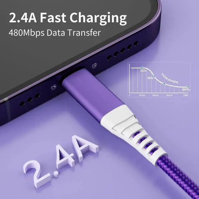 ![Alt view image 7 of 7 - [MFi Certified] iPhone Charger 6FT 3PACK USB A to Light-ning Cable Nylon USB iPhone Fast Charging Cable Cord with Tinned Copper Compatible iPhone 14/13/12/11 Pro/MAX/XR/XS/8/7/6 Plus S SE/iPad iPod](https://c1.neweggimages.com/productimage/nb640/C280S2509220HYBZ672.jpg)