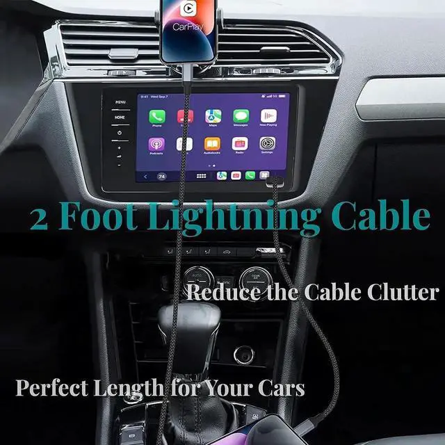 2 Foot Portable Length iPhone charger cord 2ft 2 foot lightning cable for iphone is the perfect length for your cars or trucks without having too much extra wire to tangle or coil up great for car charging and play plug without all the extra length. iPhone cord 2ft will reduce the cable clutter on desk easy to carry with power bank while hiking. MFi Certified & CarPlay CompatibleLightning cable 2ft has a built-in MFI certified chip be able to connect to the vehicles computer to initiate CarPlay effortlessly. MFi certified usb iphone charger cable 2 ft supports all iOS versions no warning message pops up.