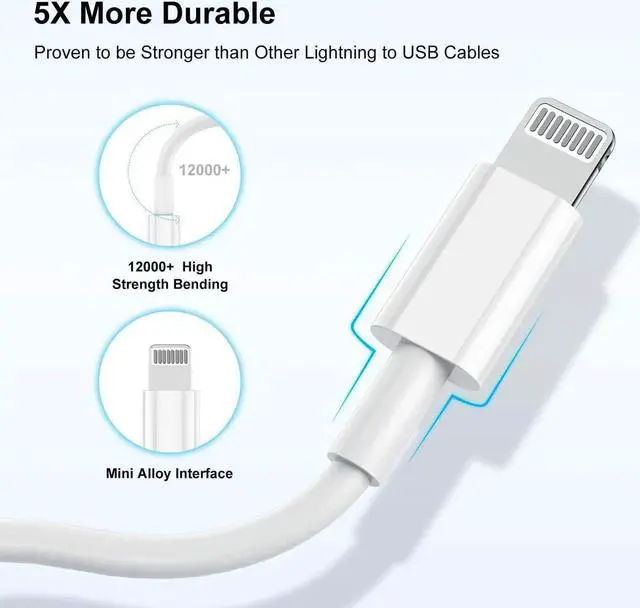 High-Quality Cables: High-quality thermoplastic elastomer TPE and PVC materials can avoid wire entanglement. The upgraded iPhone C94 charging port is durable and can withstand 12 000 insertion and removal experiments. The durability is 5 times that of ordinary cables. At the same time the 10-foot-long fast lightning charging cable and cable are very convenient you can use it at home/office/bed hotel room and other places of travel.