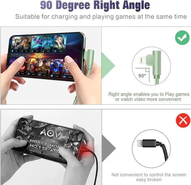 Degree Design]: Lightning charger cables has unique Right Angle Design and 90 Degree bent type different from upseting hands after prolonged grip with normal iphone cable its design makes it more convenient for playing the game or watching video when charging at any places[Superior
