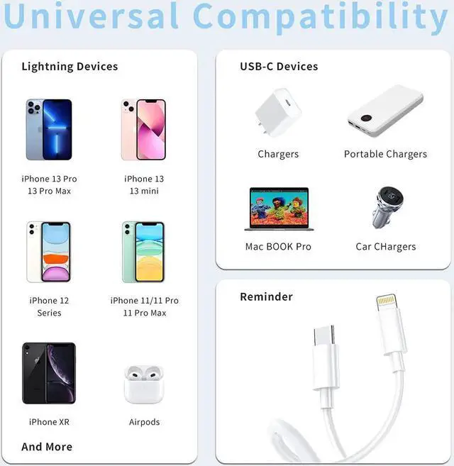 Power Delivery: Use this USB C to lightning cable with your USB C Power Delivery adapter (including 20W 29W 30W 61W or 87W USB C power adapter) to charge your iOS device and access fast-charging for iPhone 16 16 Pro 16 mini 16 Pro max 15 15 mini 15 Pro 15 Pro max 14 Pro max 13 12 Plus X XS XR XS Max 11 11 Pro and 11 Pro Max. Supports Power Delivery (Charger