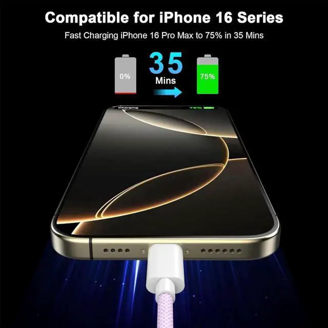 What You Get 2 Pack 60W 6ft Long USB C to C Fast Charging Cable Cord. We also provide a 36-month worry-free warranty and 24/7 friendly customer service. Any questions about the USB C charging cable cord for iPhone 16 Pro Max please feel free to contact us we will reply within 12 hours.