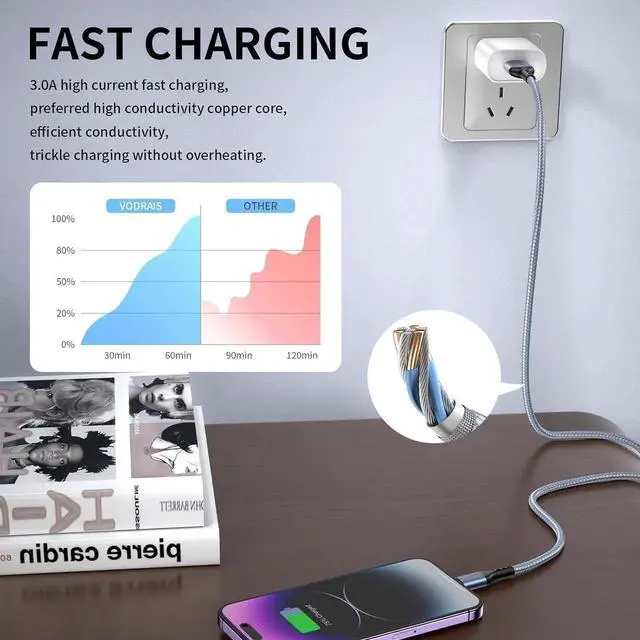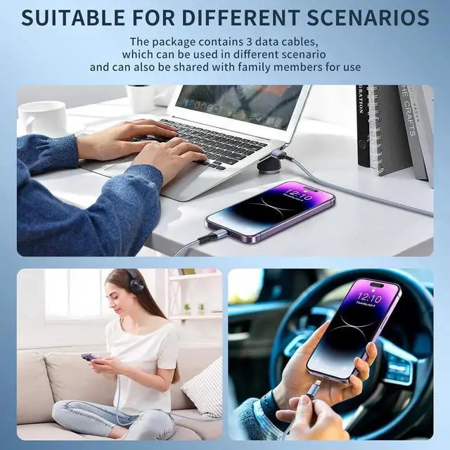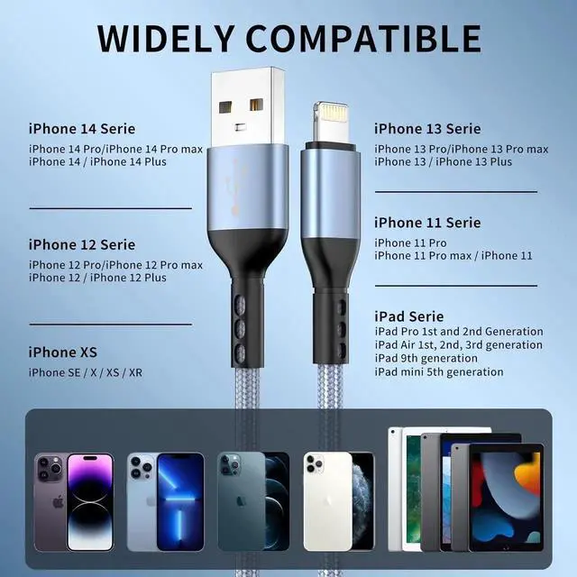 Extra-Long 10ft Length for Ultimate ConvenienceEach cable in this 3-pack offers a generous 10-foot length providing ample reach for charging your iPhone iPad or other Lightning devices from across the room in the car or at your desk. No more struggling with short cablesMFi-Certified for Safe & Reliable ChargingOfficially MFi-certified by these Lightning cables ensure 100% compatibility with your devices. Built with premium materials and advanced safety features they protect against overheating overcharging and short circuitsDurable Nylon Braiding for Long-Lasting UseReinforced with rugged nylon braiding and strengthened connectors these cables are built to withstand daily wear and tear.