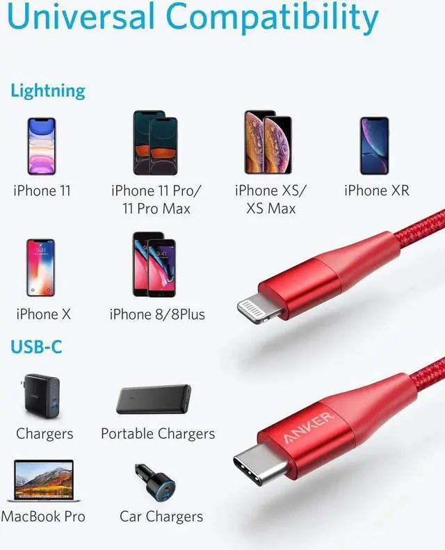 ![Alt view image 7 of 7 - JAENFONG USB C to Lightning Cable [3ft MFi Certified] Powerline+ II Nylon Braided Cable for iPhone 13 13 Pro 12 Pro Max 12 11 X XS XR 8 Plus Supports Power Delivery (RED)](https://c1.neweggimages.com/productimage/nb640/C280S25092303ARR12D.jpg)