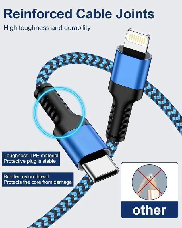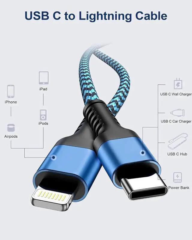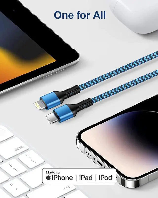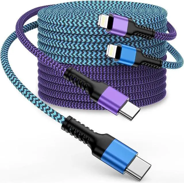 Note: you need a USB C to USB C cable for the New iPhone 15 series model SMART CHARGING & SYNC COMPATIBLE Type-C PD 3.0 to Lightning Cord seamlessly connects with your iPhone iPad or iPod featuring a Lightning connector to your USB-C or Thunderbolt 3 (USB-C) enabled Mac offering both syncing and charging capabilities. It also works perfectly with your USB-C-enabled iPad for charging purposes. Additionally this braided lightning cable is compatible with 's USB? C Power Adapter allowing you to take full advantage of fast charging on iPhone and iPad models. DURABLE NYLON BRAIDED IPHONE CHARGER CORD features a sturdy aluminum build and high-purity copper wires making it stronger than traditional TPE iPhone cables. The nylon braided design provides excellent anti-twisting and abrasion-proof properties. Rest assured the reinforced connector has undergone over 20 000 bending tests ensuring its longevity without tangling. USER-FRIENDLY USB C TO LIGHTENING CHARGER comes in a package that includes two 10FT long iPhone fast charging cables offering the perfect length for charging your devices while you're comfortably seated on the sofa lying in bed working in your office or even connecting to a car mount. These cables are easy to carry and won't knot up allowing you to enjoy data sync and charging wherever and whenever you need it.