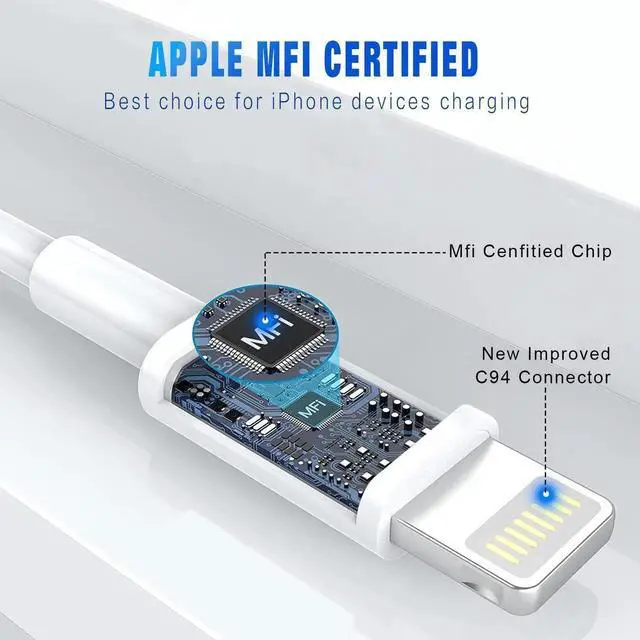Mfi Certified Lightning Cable: certified lightning cable has completed MFi certification requirements and strict quality testing ensure your devices are charged safely at their fastest possible speed connector with a lightning end ensured safe charging for your devices.