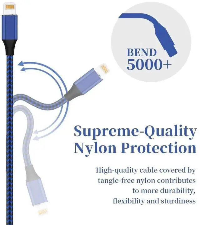 Cable Nylon Braided Layer: The iPhone charging cable is designed with a reinforced connector that has been tested to over 30 000 bends for extra protection and durability. The braided nylon insulation and precision layered welded connectors make this cable more durable and stronger than regular iPhone charger cables while being flexible and tangle-free. Withstands daily connection needs and long-term useiPhone