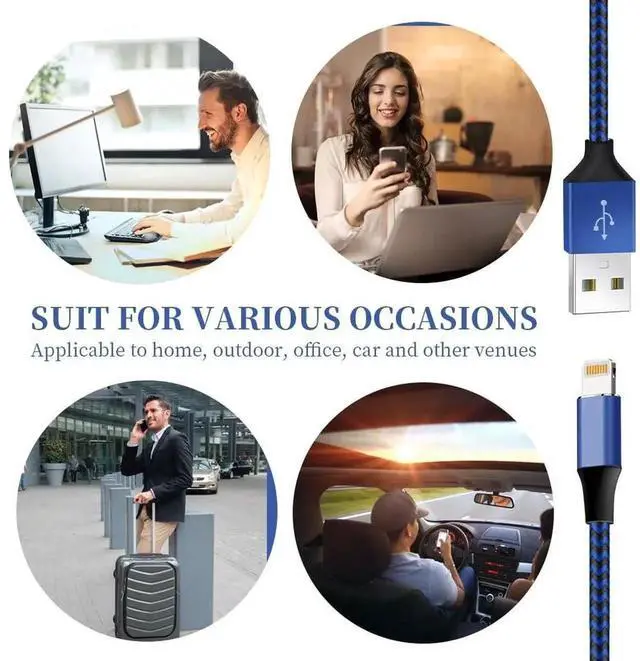 Perfect Compatibility: iPhone charger cable MFi certified with iPhone 14/13/12/11/11 Pro/11 Pro Max/XS/XS Max/XR/X/8 Plus/8/7 Plus/7/Sync 6s Plus/6s/6 Plus/6/5s/5c/5/Air 2/ mini/mini 2/mini 4 etc. 6PACK-3/3/6/6/6/10 FT iPhone charging cables convenient to charge your device in bedroom couch office back seat of car travelQuality