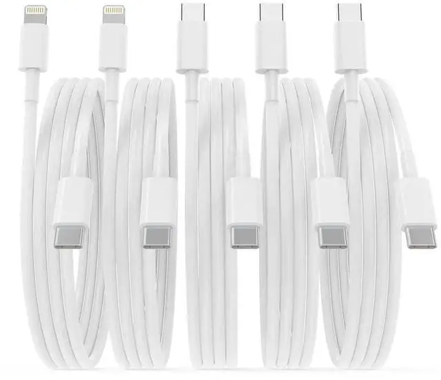 Perfect bundle: 3x USB-C to USB-C + 2x USB-C to Lightning for families or multi-device setups.