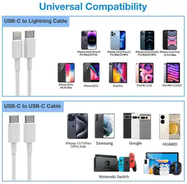 Universal Compatibility: USB-C to USB-C works with Android phones (Galaxy Pixel) laptops (MacBook ) and car chargers; MFi-certified USB-C to Lightning ensures compatibility.