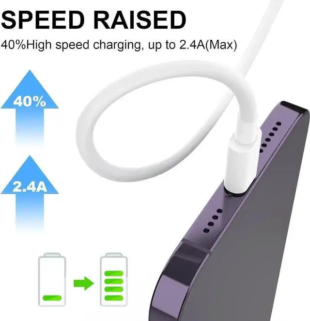 Safety Charging: Charger cable is made of high-purity copper core and intelligent chip with overcharge protection stable current protection automatic switching and battery protection and can support up to 2.4A fast charging and 480 Mbps transfer speed.