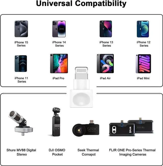 Support iPhone Fast Charging and AudioThis iPhone dock extender dongle with 8-pin Lightning Connector supports Data transmission /Audio/Video and fast charging. Suitable for all iPhone/iPad devices. Widely UsedThis iPhone lightning extender adapter can connect a variety of devices with lightning port.