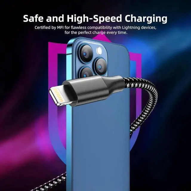 Charging: The high-purity copper core and smart chip of the iPhone connection cable improve the charging and data transfer speed of the iPhone charger. supporting up to 2.4A fast charging and 480Mbps transfer speedDurable: The iPhone charging cable features reinforced connectors and nylon insulated braided design providing additional protection and durability. This iPhone charging cable is more durable sturdy and flexible won't tangleFully