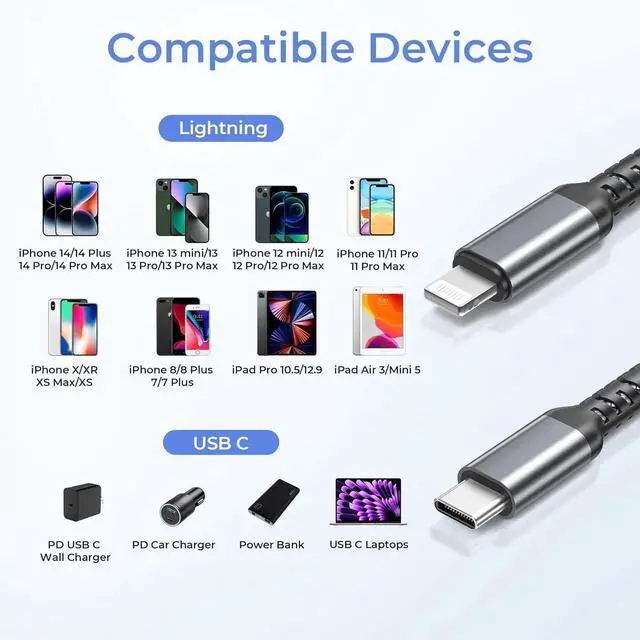 Universal Compatibility: Compatible with numerous devices featuring a Lightning port including iPhones iPads and iPods. While all devices support standard charging PD fast charging is available for newer models that support this feature.