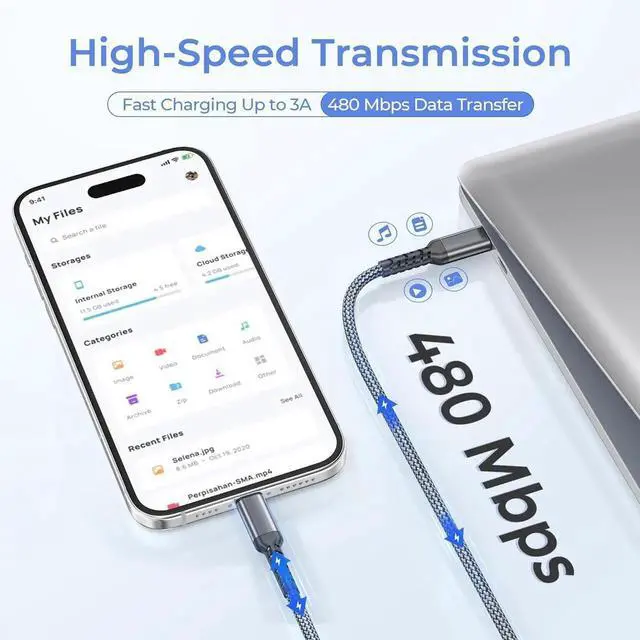 Rapid PD Fast Charging: Experience Power Delivery (PD) fast charging up to 3 Amps with our USB-C to Lightning Cable ensuring your devices charge quickly. Enjoy data transfer speeds of up to 480 Mbps for seamless syncing. Choose from various color and length options to find the perfect fit for your needs.