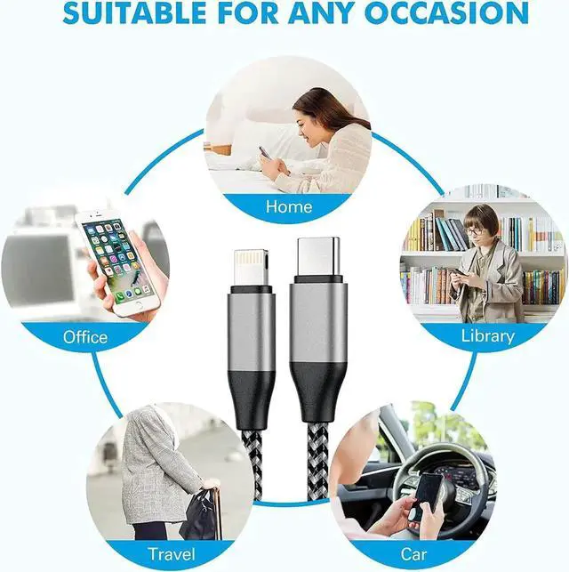 ? Super chargingReally iphone fast charger our charging cable 30 minutes to restore 60% of the phone's power superior iPhone connector ensure superior data transfer with fast and stable charging.? Perfectly compatible iPhone cableOur iphone charging cable made for iPhone iPad and iPod. Supporting fast-charging for iPhone 14/14 Pro/14 Pro Max/14 Plus/13/13 Pro/13 Pro Max/13mini/12/12 Pro Max/12 Pro/11/11 Pro/X/XS/XR/XS Max/8/8 Plus/SE. The ultra-thin and lightweight design is compatible with the iOS system no longer worry about the charging distance for any scenarios and quickly improve the efficiency of work and life.? 100% satisfactory serviceYou will get 2 packs of 10ft usb c to lightning cables and we will render a 12-month service to you as promised ensure your pleasing shopping experience.