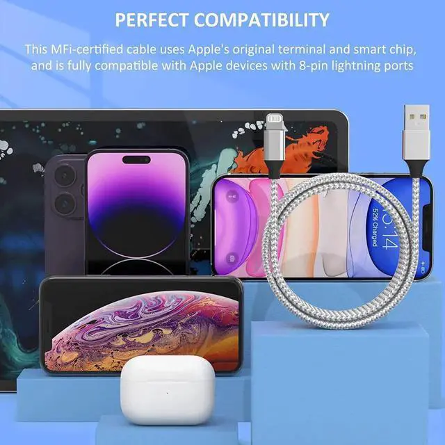 Perfect Compatibility: iPhone Charger Cable for iPhone 14Pro Max/14Pro/14/14Plus/iPhone 13Pro Max/13Pro/13/13mini/12Pro Max/12Pro/12/iphone xr /iphone xs / xs max /iphone x/iphone 11/iphone11 pro/iphone 11 pro Max iPhone 8 / 8 Plus iPhone 7 / 7 Plus iPhone 6s Plus / 6s / 6 Plus / 6 and more.