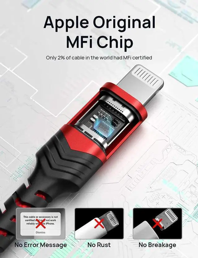 MFi Certified Lightning Cable: Equipped with 's original C89 connector and smart chip this cable matches the performance of the original but is 10 times sturdier. Verify its authenticity on 's websiteSuperior