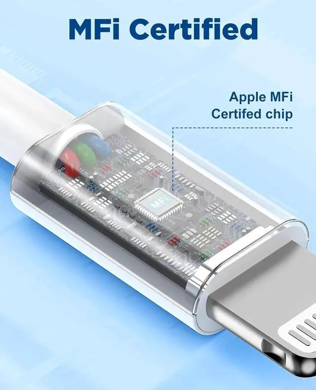 MFi Certified iphone cable 3FtBuilt with original chip promise no warning message pops up it ensures that your lightning devices are loaded and charge safely and faster at maximum speed. Durable iphone Carplay CableHigh-quality interface which can withstand up to 30 000 bending tests you can bend the charging cable without any worriesStrong CompatibilityIt Ensures complete high speed charge and sync compatibility with iPhone14 13/12/11 Pro Max / X / XS / XS Max / XR / 8 / 8 Plus / 7 / 7 Plus / 6s / 6s Plus / 6 / 6 Plus / SE / 5S / 5C / 5 iPad Pro iPad (6th / 5th / 4th / 3th / 2th generation) iPad iPad mini 4 / 3 / 2 iPad mini iPad Air 2 iPad Air iPod Touch (6th / 5th generation)Practical 3ft iphone Car Charger With the 3ft/1M length you can lie on the car or sofa and use your devices while you are charging at the same time.