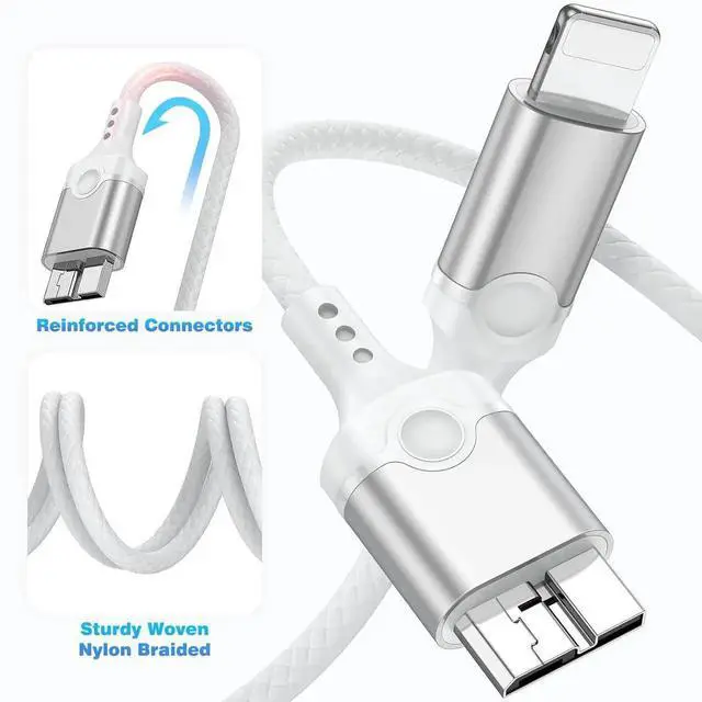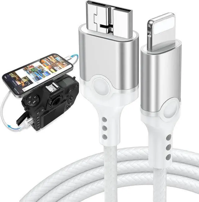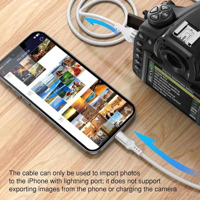 480Mbps instant data transfer speed seamless transfer files out from camera to your iPhoneAn ideal solution for copying photos or videos from the camera to your iPhone in a short period. With this Micro USB 3.0 to iPhone adapter cable you can transfer photos and videos from your camera to your iPhone or iPad share the wonderful moments with your family or friendThe cable can only be used to import photos to the iPhone with lightning port; it does not support exporting images from the phone or charging the camera