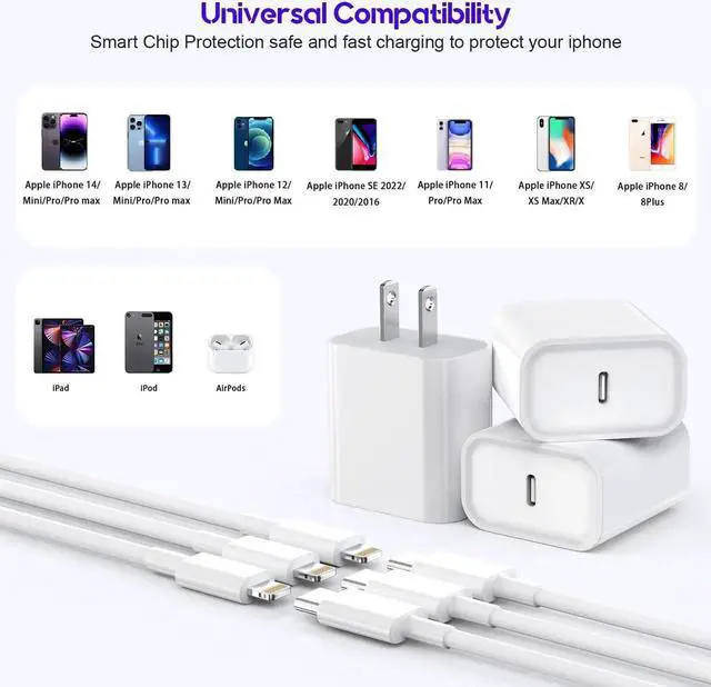 Applicable iPhone Equipment: 3set Compact PD iphone charger fast charging block compatible with iPhone 14/14 Pro/ 14 Pro Max/14 Plus/13/13 Pro/13 Pro Max/13 mini/12/12 Mini/12 Pro/12 Pro Max/SE 2020/SE/2022/11/11 Pro/11 Pro Max/XS/XS Max/XR/X/8 Plus this fast charger also charges for iPhone 7 6 Plus iPhone 5 5c 5s SE Airpods at an standard charging speed. And iPad Pro/ iPad Air/iPad Mini/ iPad AirPods and more Lighting Devices. 3