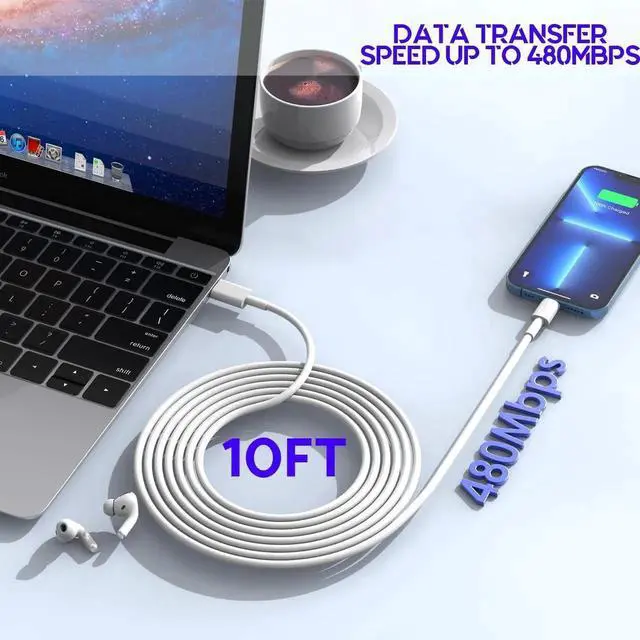 Cord: With iPhone certified chip iphone charger 10foot USB C to lightning cable recognizes your devices directly The Certification ensures compatibility with iPhone devices. No any trigger warning messages fully support with iOS versions. Tangle-free 10 Feet length is convenient for usage while charging and syncing at home/office/travel in bedroom hotel and more. 3X iPhone Charger Fast Charging 50% in 30 minutes: iPhone Fast Charger equipped with PD 3.0 USB Type C power delivery wall plug PD 3.0 Quick-Charge USB C port reach up to 3X faster than original 5W charger charging your iPhone 14 up to 50% in just 30 minutes saving over 1.5 hrs for you. Perfectly compatible with all iPhone Series with PD 3.0 usb-c quick charging port and iPhone Certified 10 ft long fast charging cable.
