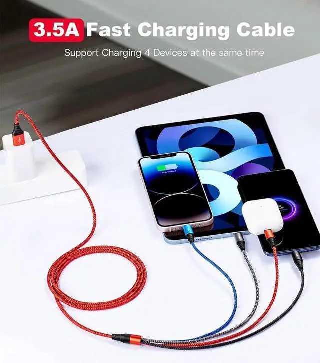 Charging Cable: 4 in 1 Multi Charger Cord including Dual Lightning Type-C Micro USB that support to charger most of the mobile phones. charging cords for multiple devices can be used anywhere which are perfect for home use office travel or car or sharing with friends.? Fast