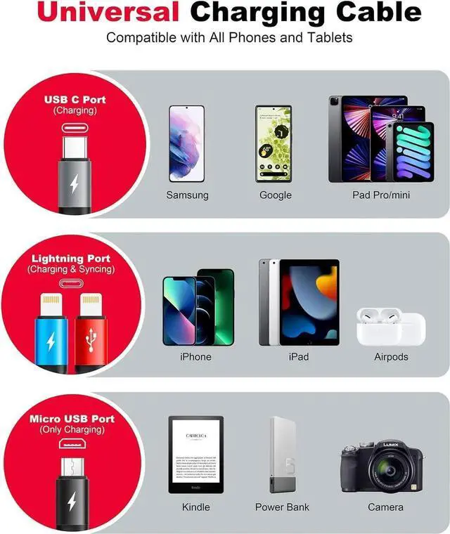 Premium Nylon Braided: This multi chargers for all devices has been upgraded three times for durability. connectors and laser welding technology ensure that the connectors will not break and loose. nsuring safer and more stable power delivery. Over 20 000+ bending lifespan of the universal usb charging cables can meet long-term daily use.?