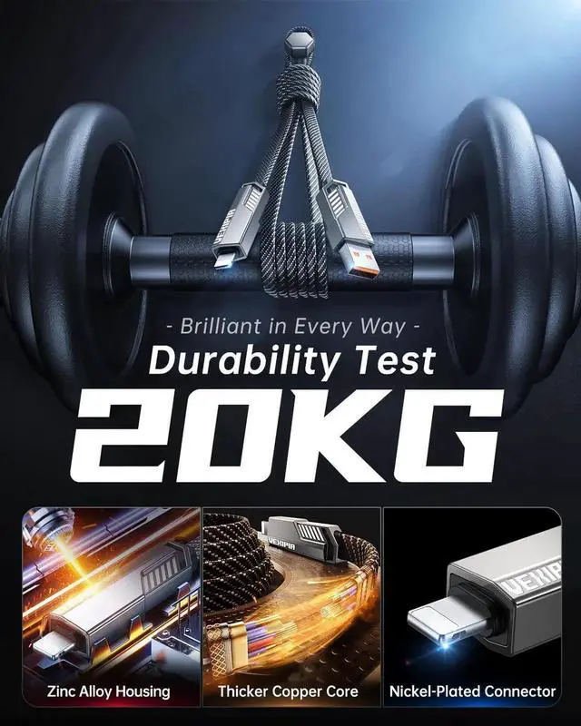 High-Speed Charging: Our multi-charging cable is equipped with 60W charging power allowing you to get the power required for one day in 35 minutes.