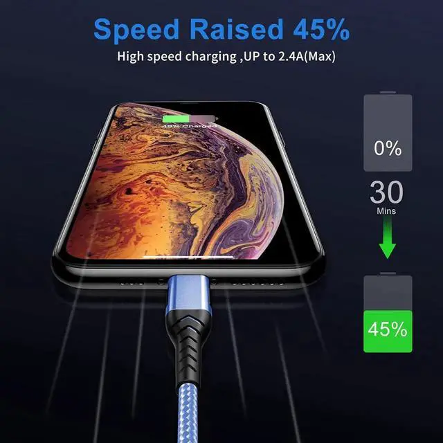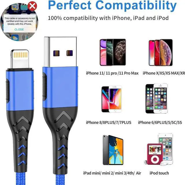 iPhone Charger [ MFi Certified] 3Pack 10FT Lightning Cable for Long Charger Cable Fast Charging Cord Compatible with with iPhone Xs Max/XS/XR/X/8/7/6S/6/Plus/SE/iPad(Blue)