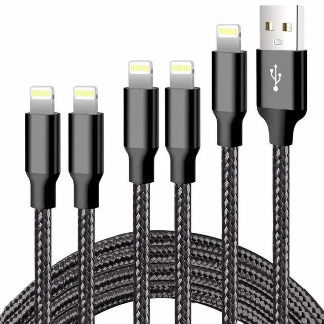? PERFECT COMBINATION -- 5 Pack Black iPhone USB A to Lightning Cable. Every package contains 5 cables in different lengths 3ft 3ft 6ft 6ft and 10ft for various distances charging! You can full of all enjoy watching or play a game follow your heart.