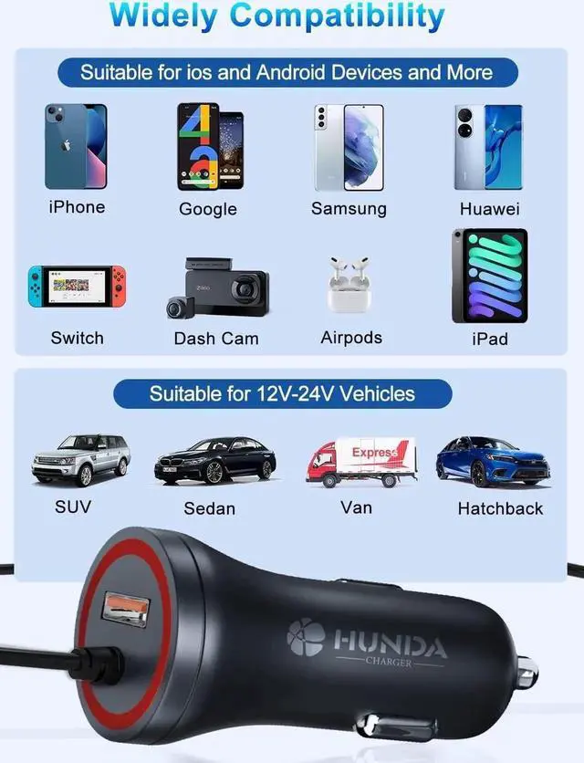 Lifetime Warranty: HUNDA stands behind the quality of this iPhone car charger fast charging with a hassle-free lifetime warranty giving you peace of mind and ensuring a reliable charging solution for years to come.