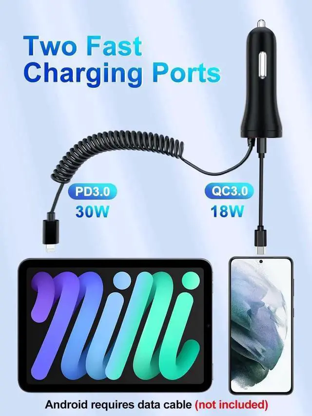 Durable Design: This USB C car charger fast charging featured a coiled 5ft Lightning cable that extends and contracts as needed the car iPhone charger provides convenience and reduces cable clutter while the premium ABS material ensures long-lasting durability.