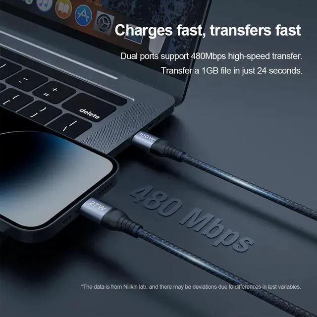 Durable Design: Equipped with E-MARK smart chip the data cable provides safe and stable protection during charging and data transmission. At the same time the design of reinforced nylon braided wire body and aviation aluminum metal joints makes the data cable more durable and resistant to wear and tear in daily use