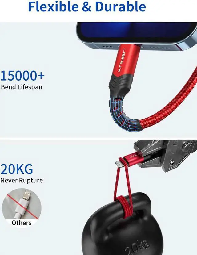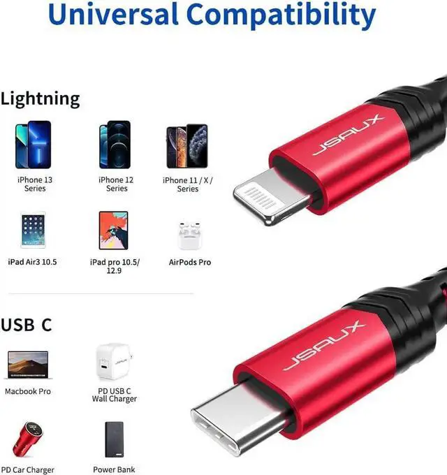 ![Alt view image 5 of 7 - JAENFONG USB C to Lightning Cable [2 Pack 6FT] [ MFi Certified] iPhone 13 Charger Cable Compatible with iPhone 14/13 Pro/13 Pro Max/12 Pro/11 Pro Max/X/XS/XR/8 iPad 9th 2021 -Red](https://c1.neweggimages.com/productimage/nb640/C280S2509230CXRDVC4.jpg)