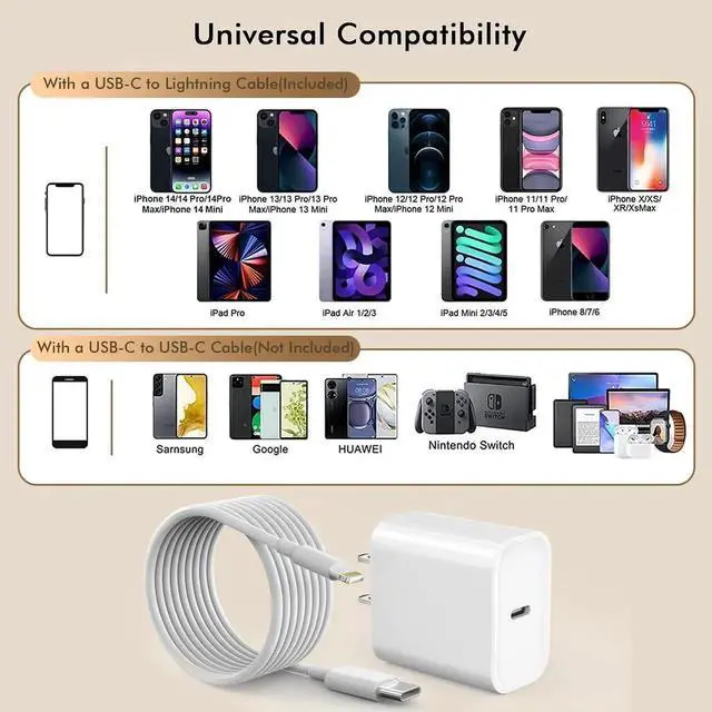 ![Alt view image 6 of 7 - JAENFONG [ MFi Certified]10FT Fast iPhone Charger Extra Long Charger Fast Charging 2Pack 20W USB C Charger Block Plug + 10Foot Lightning Cable Cord for iPhone 14/Pro/Pro Max/Plus/13/12/11/XS/XR/X/SE](https://c1.neweggimages.com/productimage/nb640/C280S2509230D2LMK35.jpg)