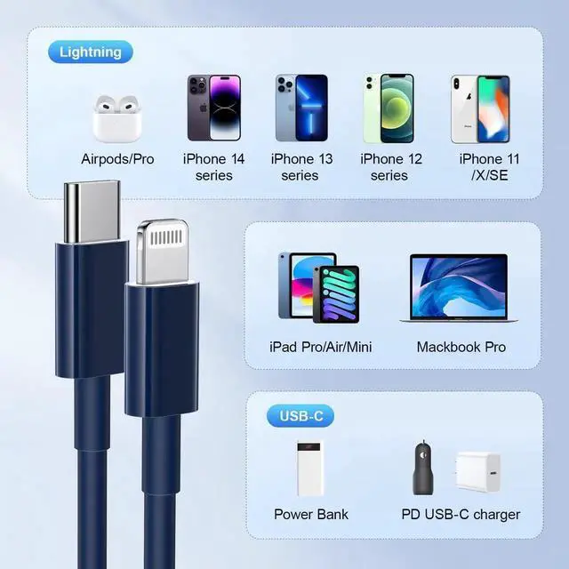 - [What You'll get]: You'll get 2 Pack 6ft long USBC to ightning Cables We also offer a 365-day warranty and 24/7 customer consultation. If you have any questions, we will solve your problem within 24 hours.