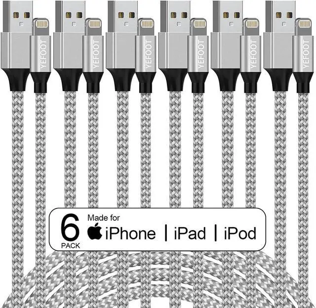 Quality Warranty: YEFOOT iphone charger cable 6Pack lightning cable [3/3/6/6/6/10ft] with Lifetime Replacement & 24*7 friendly customer support ensure your pleasing shopping experience.? MFi Certified iPhone