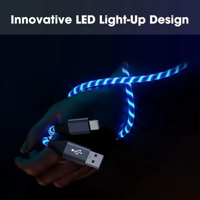 Innovative LED Light-Up Design: This cable features a captivating flowing LED light that moves dynamically along its length while charging providing both functionality and style. In low-light conditions the vibrant light effect makes it effortless to locate your devices adding a unique and modern touch to your space that enhances your charging experience.?