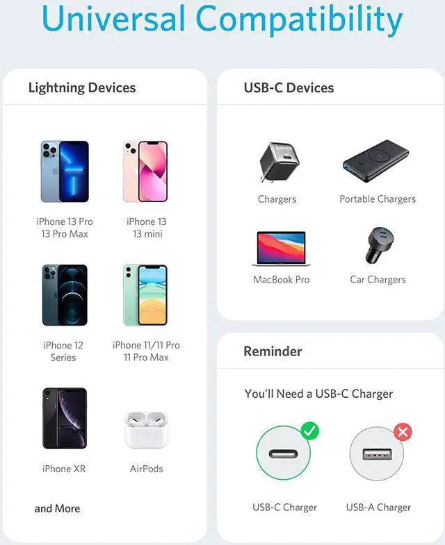 MFi: MFi certification and strict quality testing ensure your iPhone devices are charged safely at their fastest possible speed.