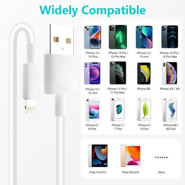 Good ValueFor the price of one you get the Package include 2 Pack 6 Feet Mfi Certified iPhone Cables. Perfect DesignPerfect Lengths - 6 feet Compact Lightning to USB connector head fits most iphone cases and accessories you don't have to take the case off when charging make you life more convenient. Instant Responses No Error Message pops up. Real High Speed Phone Charging Cable with stable and efficient current output you can plug it into laptop computers and in-car charging adapter. Charge & SyncEnsure a maximum charging speed up to 2.4 amp. Great performance ensures your devices syncs and charge simultaneously with up to 480 Mb/s transferring speed.