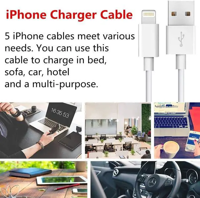 What you get: 5 pack iPhone charging cables in lengths (5 Pack 6FT) for different occasions. Replace your phone accessories cables or add another for home work or travel.