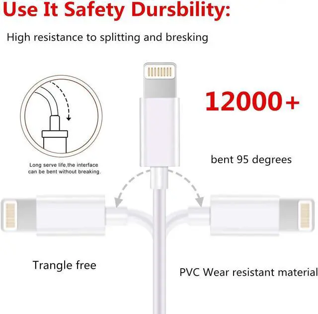 Durability: iPhone charger cable with a tested 12000+ bend lifespan the charger cables are more durable bendable wear-resistant and pull-resistant.